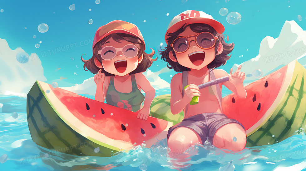 本作品内容为夏天儿童卡通西瓜清凉插画, 格式为 jpg, 大小20 MB, 图片尺寸为5824 x 3264, 源文件无水印, 欢迎使用熊猫办公。 如认为平台内容涉嫌侵权,可通过邮件:tousu@tukuppt.com提出书面通知,我们将及时处理。