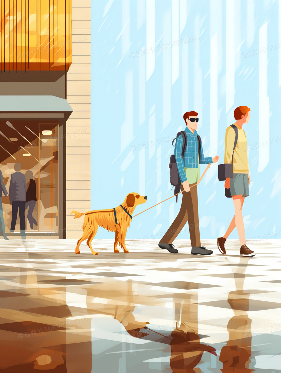 本作品内容为牵着导盲犬的盲人插画, 格式为 jpg, 大小4 MB, 图片尺寸为1856 x 2464, 源文件无水印, 欢迎使用熊猫办公。 如认为平台内容涉嫌侵权,可通过邮件:tousu@tukuppt.com提出书面通知,我们将及时处理。