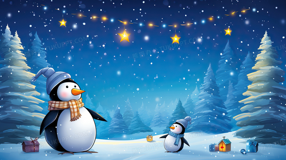 本作品内容为冬天雪地风景卡通企鹅插画, 格式为 jpg, 大小6 MB, 图片尺寸为2912 x 1632, 源文件无水印, 欢迎使用熊猫办公。 如认为平台内容涉嫌侵权,可通过邮件:tousu@tukuppt.com提出书面通知,我们将及时处理。