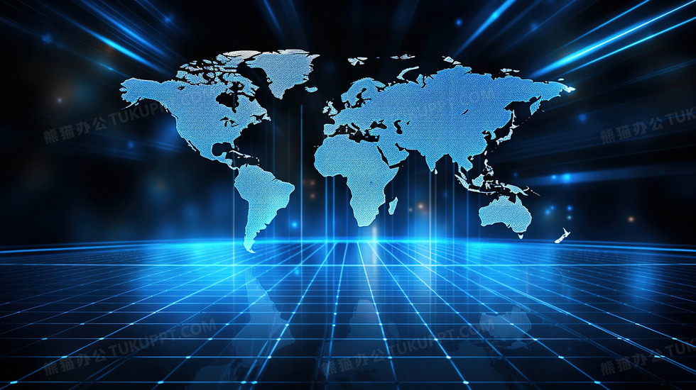 本作品内容为蓝色互联网科技世界地图插画, 格式为 jpg, 大小3 MB, 图片尺寸为2912 x 1632, 源文件无水印, 欢迎使用熊猫办公。 如认为平台内容涉嫌侵权,可通过邮件:tousu@tukuppt.com提出书面通知,我们将及时处理。
