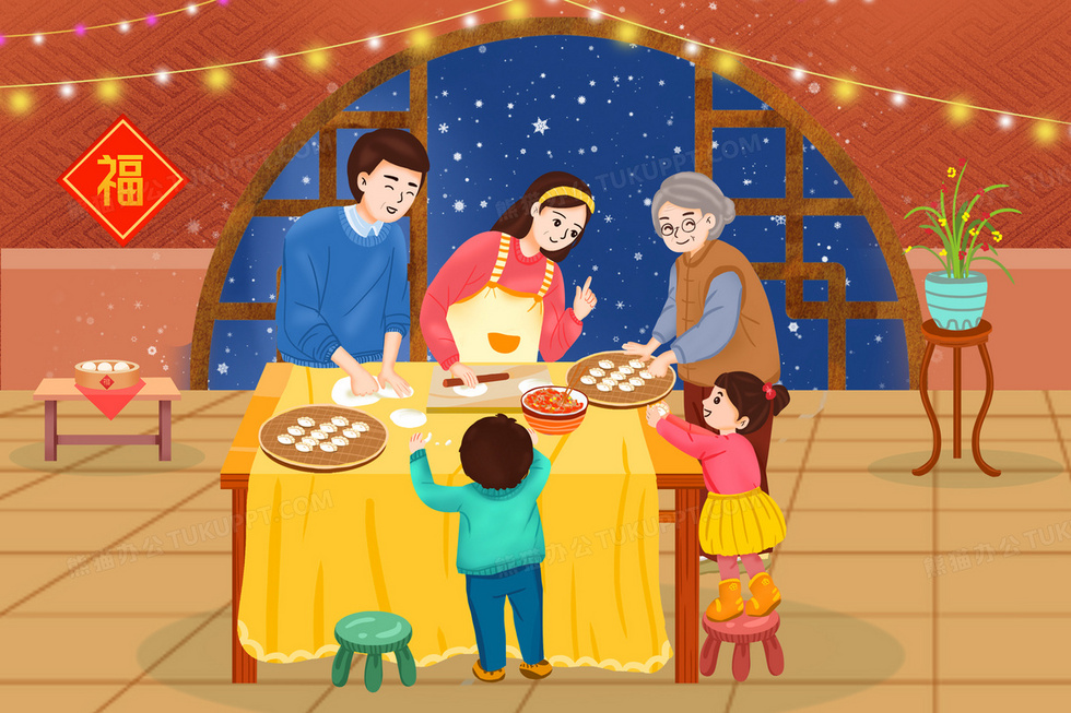 本作品内容为冬至节气家人一起包饺子插画, 格式为 psd, 大小32 MB, 请使用软件PhotoShop(CC)打开, 源文件无水印, 欢迎使用熊猫办公。 如认为平台内容涉嫌侵权,可通过邮件:tousu@tukuppt.com提出书面通知,我们将及时处理。