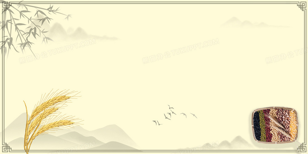 本作品内容为中国风粮食日背景, 格式为 psd, 大小15 MB, 图片尺寸为4724 x 2362, 作品中背景图片无需修改, 源文件无水印,可以直接使用, 欢迎使用熊猫办公。 如认为平台内容涉嫌侵权,可通过邮件:tousu@tukuppt.com提出书面通知,我们将及时处理。