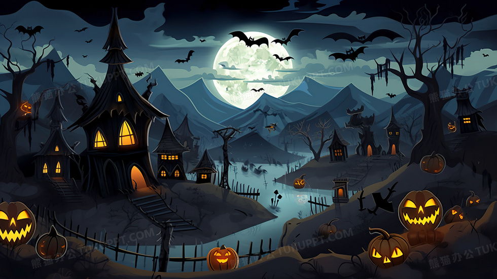 本作品内容为万圣节卡通南瓜森林鬼怪插画, 格式为 jpg, 大小5 MB, 图片尺寸为2912 x 1632, 源文件无水印, 欢迎使用熊猫办公。 如认为平台内容涉嫌侵权,可通过邮件:tousu@tukuppt.com提出书面通知,我们将及时处理。
