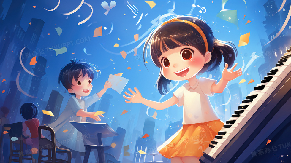本作品内容为音乐课堂上沉浸在音符世界中的学生插画, 格式为 jpg, 大小5 MB, 图片尺寸为2912 x 1632, 源文件无水印, 欢迎使用熊猫办公。 如认为平台内容涉嫌侵权,可通过邮件:tousu@tukuppt.com提出书面通知,我们将及时处理。
