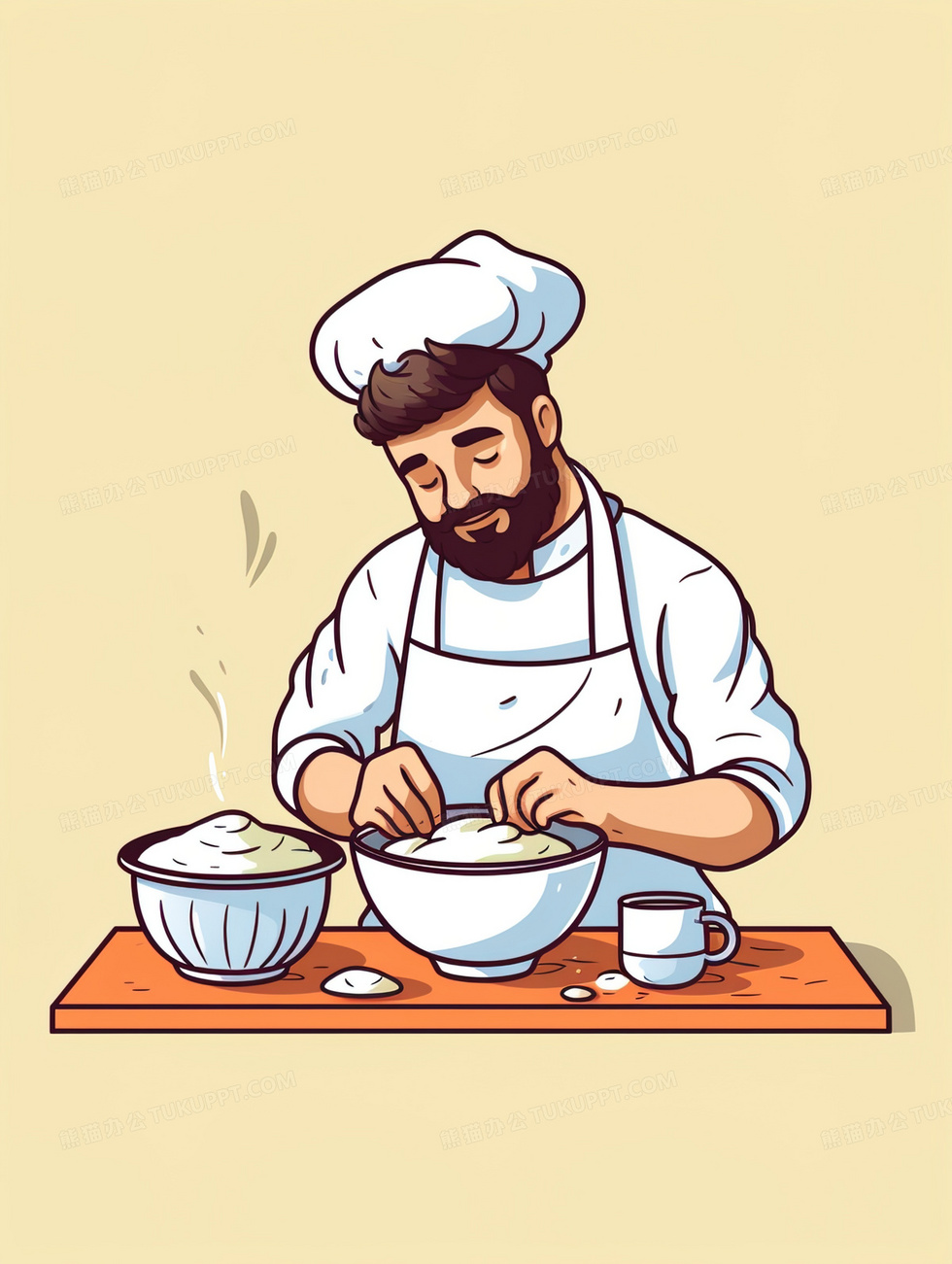 本作品内容为正在和面的西点厨师简约职业插画, 格式为 jpg, 大小4 MB, 图片尺寸为1856 x 2464, 源文件无水印, 欢迎使用熊猫办公。 如认为平台内容涉嫌侵权,可通过邮件:tousu@tukuppt.com提出书面通知,我们将及时处理。