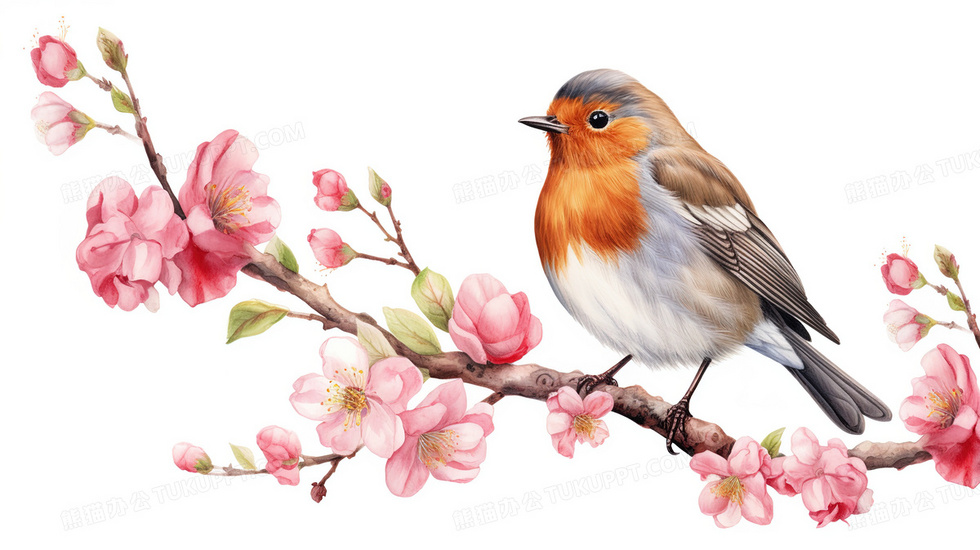 本作品内容为粉色桃花树枝上的麻雀小鸟插画, 格式为 jpg, 大小5 MB, 图片尺寸为2912 x 1632, 源文件无水印, 欢迎使用熊猫办公。 如认为平台内容涉嫌侵权,可通过邮件:tousu@tukuppt.com提出书面通知,我们将及时处理。