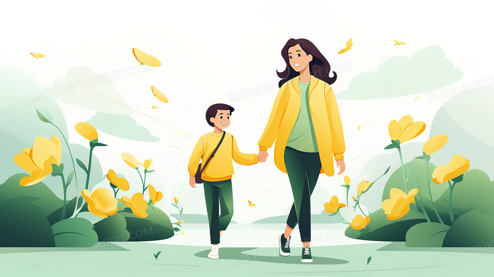 本作品内容为春季母亲带着孩子在公园里散步插画, 格式为 jpg, 大小4 MB, 图片尺寸为2912 x 1632, 源文件无水印, 欢迎使用熊猫办公。 如认为平台内容涉嫌侵权,可通过邮件:tousu@tukuppt.com提出书面通知,我们将及时处理。