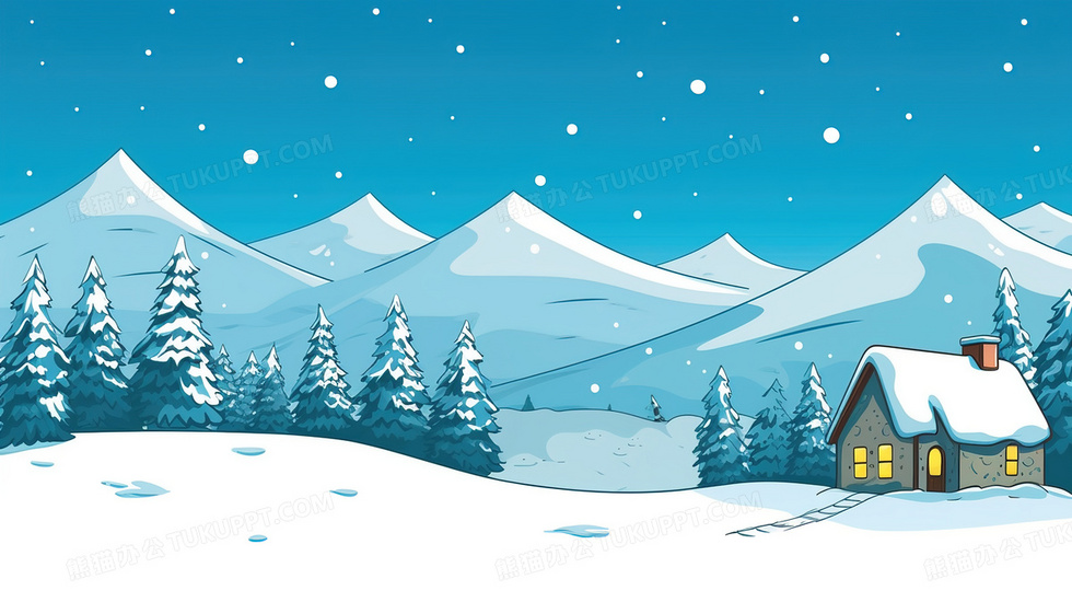 本作品内容为冬天雪中山林里的小木屋插画, 格式为 jpg, 大小5 MB, 图片尺寸为2912 x 1632, 源文件无水印, 欢迎使用熊猫办公。 如认为平台内容涉嫌侵权,可通过邮件:tousu@tukuppt.com提出书面通知,我们将及时处理。