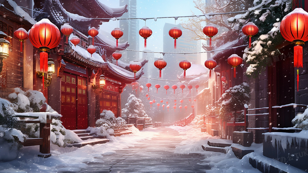本作品内容为春节张灯结彩的积雪古镇插画 , 格式为 jpg, 大小7 MB, 图片尺寸为2912 x 1632, 源文件无水印, 欢迎使用熊猫办公。 如认为平台内容涉嫌侵权,可通过邮件:tousu@tukuppt.com提出书面通知,我们将及时处理。