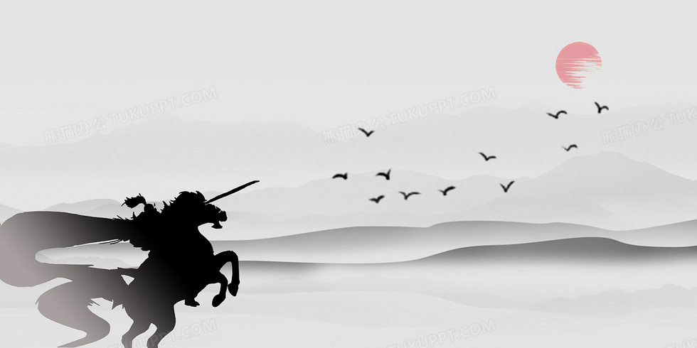 本作品内容为山水古风将军武侠中国风背景, 格式为 psd, 大小59 MB, 图片尺寸为4724 x 2362, 作品中背景图片无需修改, 源文件无水印,可以直接使用, 欢迎使用熊猫办公。 如认为平台内容涉嫌侵权,可通过邮件:tousu@tukuppt.com提出书面通知,我们将及时处理。
