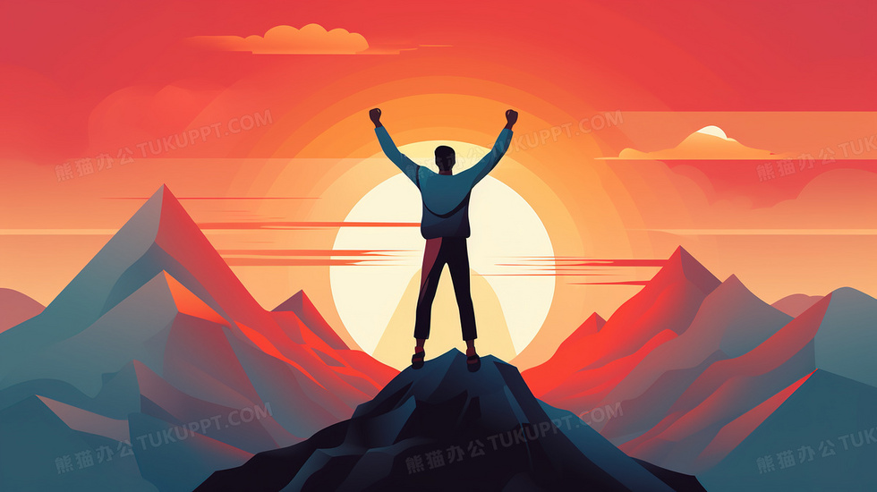本作品内容为站在顶峰高举双手的商务人士插画, 格式为 jpg, 大小4 MB, 图片尺寸为2912 x 1632, 源文件无水印, 欢迎使用熊猫办公。 如认为平台内容涉嫌侵权,可通过邮件:tousu@tukuppt.com提出书面通知,我们将及时处理。