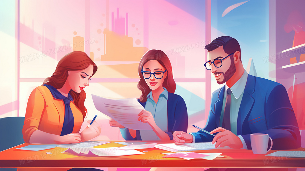 本作品内容为职场里正在开会的商务人员插画, 格式为 jpg, 大小4 MB, 图片尺寸为2912 x 1632, 源文件无水印, 欢迎使用熊猫办公。 如认为平台内容涉嫌侵权,可通过邮件:tousu@tukuppt.com提出书面通知,我们将及时处理。