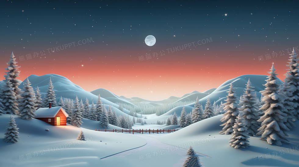 本作品内容为冬季山林雪地夜景插画, 格式为 jpg, 大小6 MB, 图片尺寸为2912 x 1632, 源文件无水印, 欢迎使用熊猫办公。 如认为平台内容涉嫌侵权,可通过邮件:tousu@tukuppt.com提出书面通知,我们将及时处理。