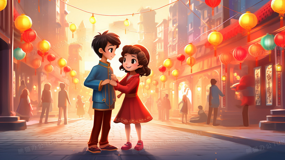 本作品内容为挂满灯笼的古镇街道上的游客插画, 格式为 jpg, 大小5 MB, 图片尺寸为2912 x 1632, 源文件无水印, 欢迎使用熊猫办公。 如认为平台内容涉嫌侵权,可通过邮件:tousu@tukuppt.com提出书面通知,我们将及时处理。