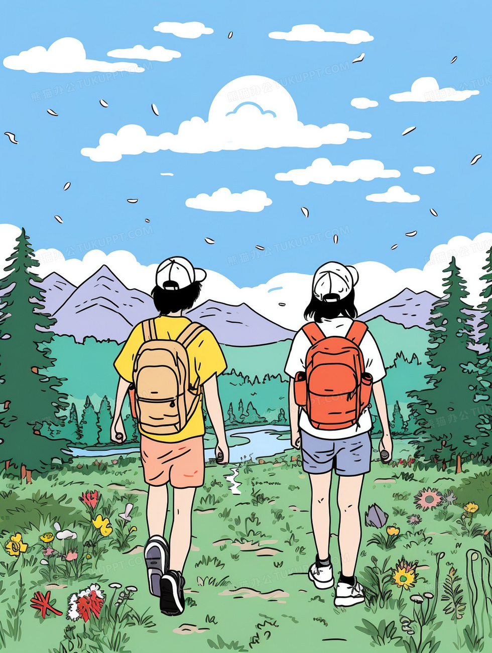 本作品内容为在春天一起户外徒步的朋友插画, 格式为 jpg, 大小6 MB, 图片尺寸为1856 x 2464, 源文件无水印, 欢迎使用熊猫办公。 如认为平台内容涉嫌侵权,可通过邮件:tousu@tukuppt.com提出书面通知,我们将及时处理。