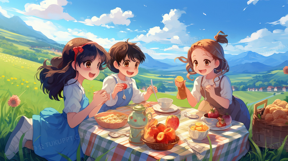 本作品内容为春天在绿草地上野餐的孩子们插画, 格式为 jpg, 大小5 MB, 图片尺寸为2912 x 1632, 源文件无水印, 欢迎使用熊猫办公。 如认为平台内容涉嫌侵权,可通过邮件:tousu@tukuppt.com提出书面通知,我们将及时处理。
