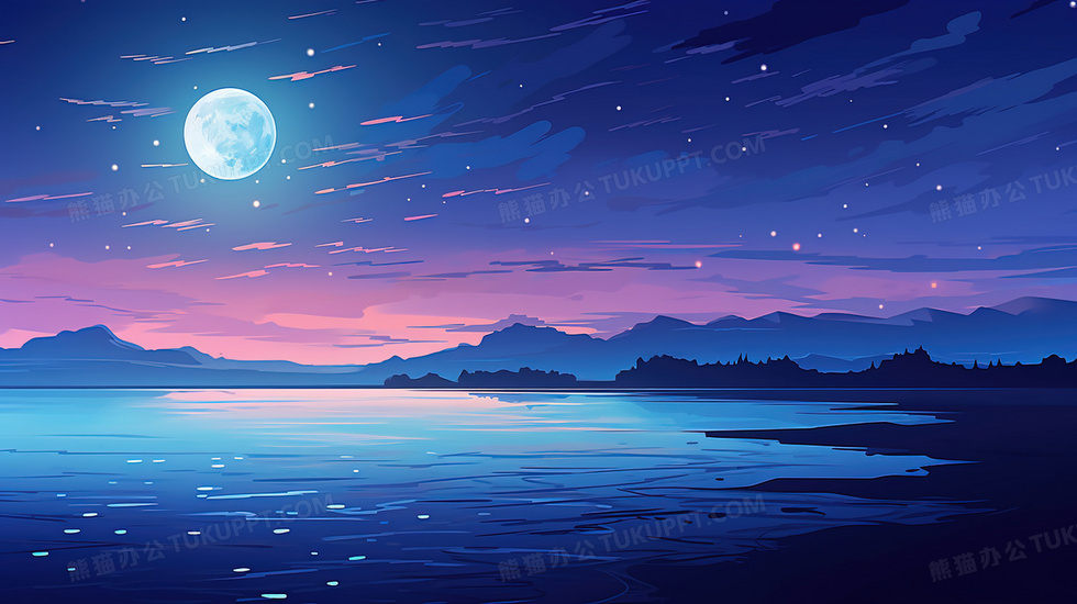 本作品内容为唯美夜晚月下星空插画, 格式为 jpg, 大小5 MB, 图片尺寸为2912 x 1632, 源文件无水印, 欢迎使用熊猫办公。 如认为平台内容涉嫌侵权,可通过邮件:tousu@tukuppt.com提出书面通知,我们将及时处理。