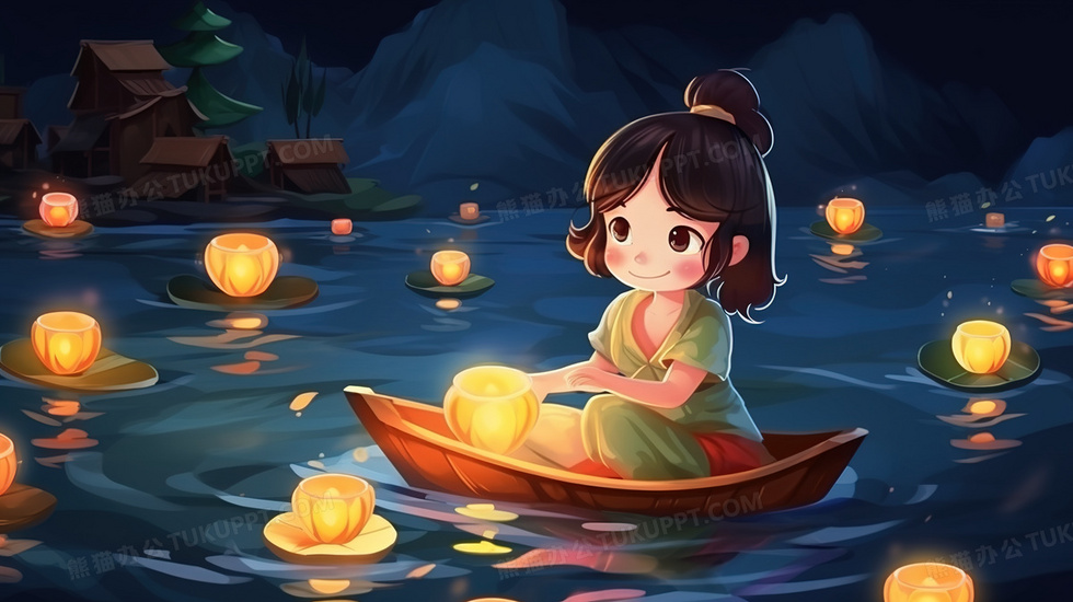 本作品内容为小船上放花灯的少女祈福插画, 格式为 jpg, 大小4 MB, 图片尺寸为2912 x 1632, 源文件无水印, 欢迎使用熊猫办公。 如认为平台内容涉嫌侵权,可通过邮件:tousu@tukuppt.com提出书面通知,我们将及时处理。