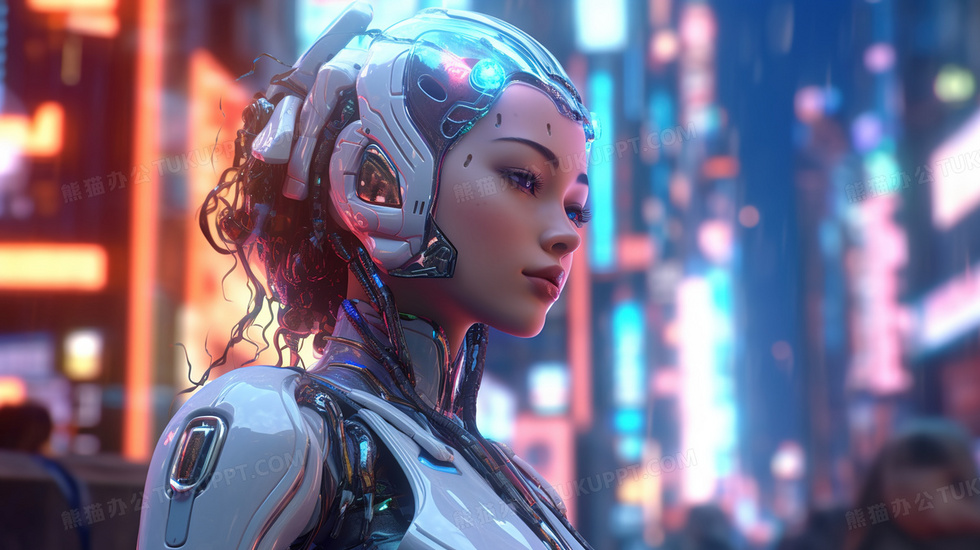 本作品内容为科技人工智能女性机器人插画, 格式为 jpg, 大小5 MB, 图片尺寸为2912 x 1632, 源文件无水印, 欢迎使用熊猫办公。 如认为平台内容涉嫌侵权,可通过邮件:tousu@tukuppt.com提出书面通知,我们将及时处理。
