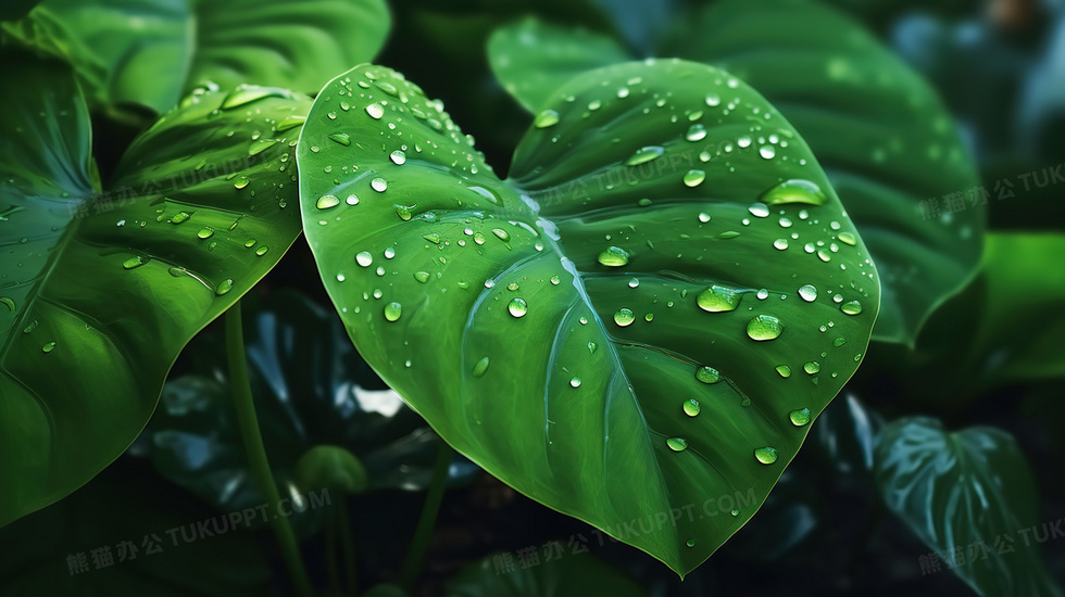 本作品内容为巨大的绿色植物叶子上挂着透明的水珠创意图片, 格式为 jpg, 大小6 MB, 图片尺寸为2912 x 1632, 源文件无水印, 欢迎使用熊猫办公。 如认为平台内容涉嫌侵权,可通过邮件:tousu@tukuppt.com提出书面通知,我们将及时处理。