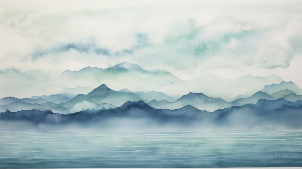 本作品内容为淡雅中国风远山风景插画, 格式为 jpg, 大小4 MB, 图片尺寸为2912 x 1632, 源文件无水印, 欢迎使用熊猫办公。 如认为平台内容涉嫌侵权,可通过邮件:tousu@tukuppt.com提出书面通知,我们将及时处理。