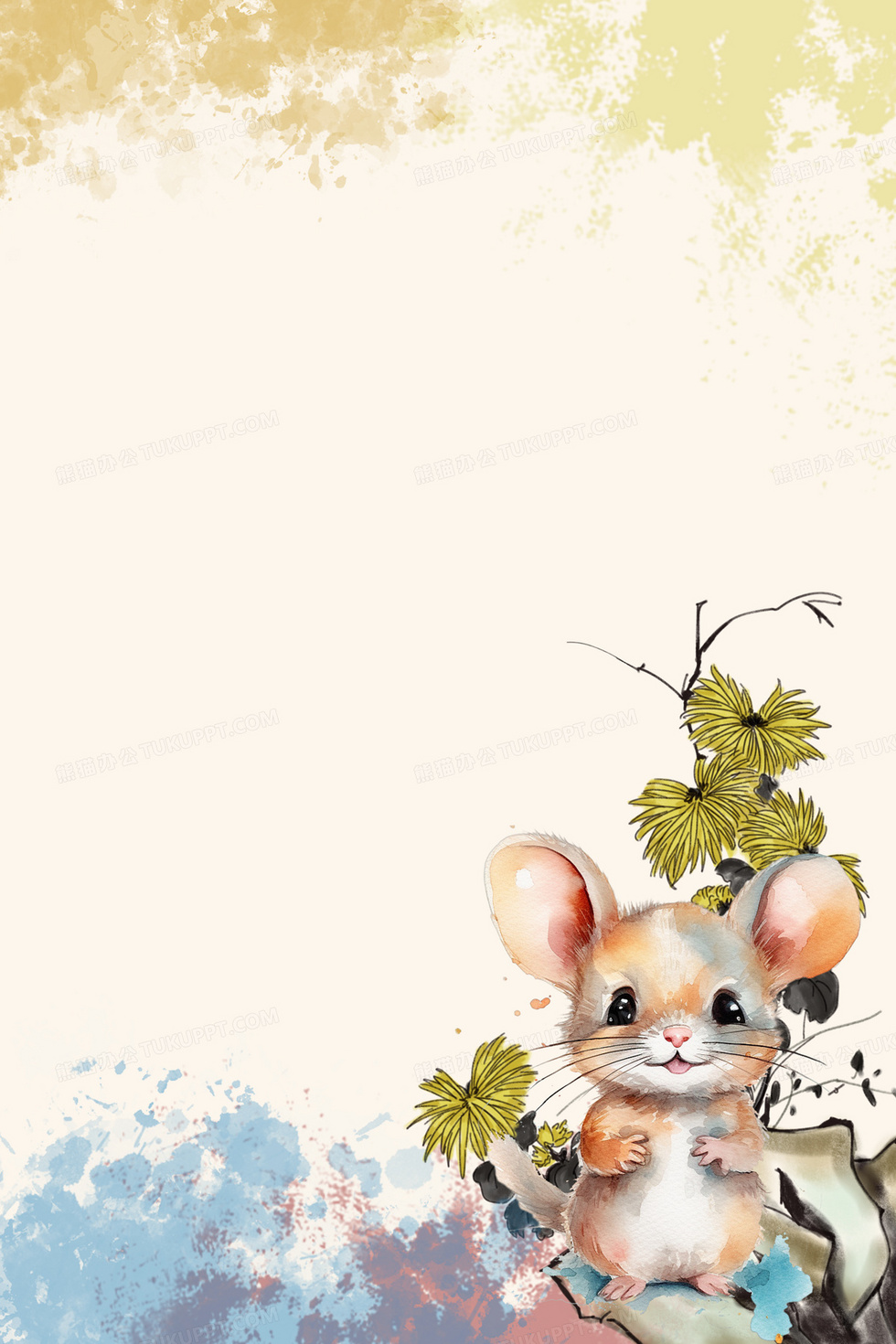 本作品内容为水彩老鼠合成背景, 格式为 psd, 大小32 MB, 图片尺寸为3543 x 5314, 作品中背景图片无需修改, 源文件无水印,可以直接使用, 欢迎使用熊猫办公。 如认为平台内容涉嫌侵权,可通过邮件:tousu@tukuppt.com提出书面通知,我们将及时处理。