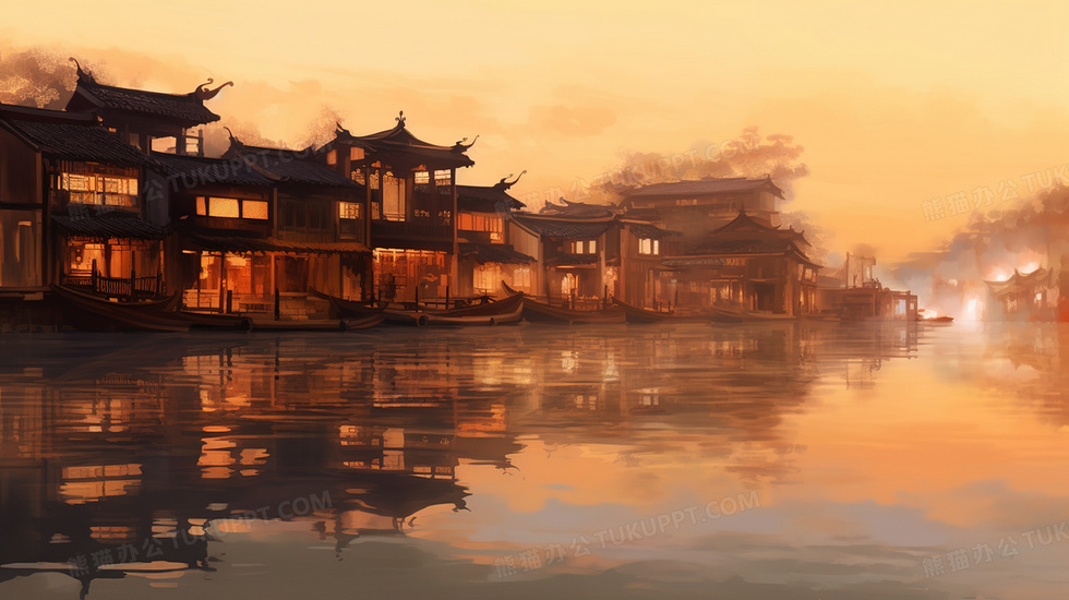 本作品内容为江南水乡古镇插画, 格式为 jpg, 大小5 MB, 图片尺寸为2912 x 1632, 源文件无水印, 欢迎使用熊猫办公。 如认为平台内容涉嫌侵权,可通过邮件:tousu@tukuppt.com提出书面通知,我们将及时处理。