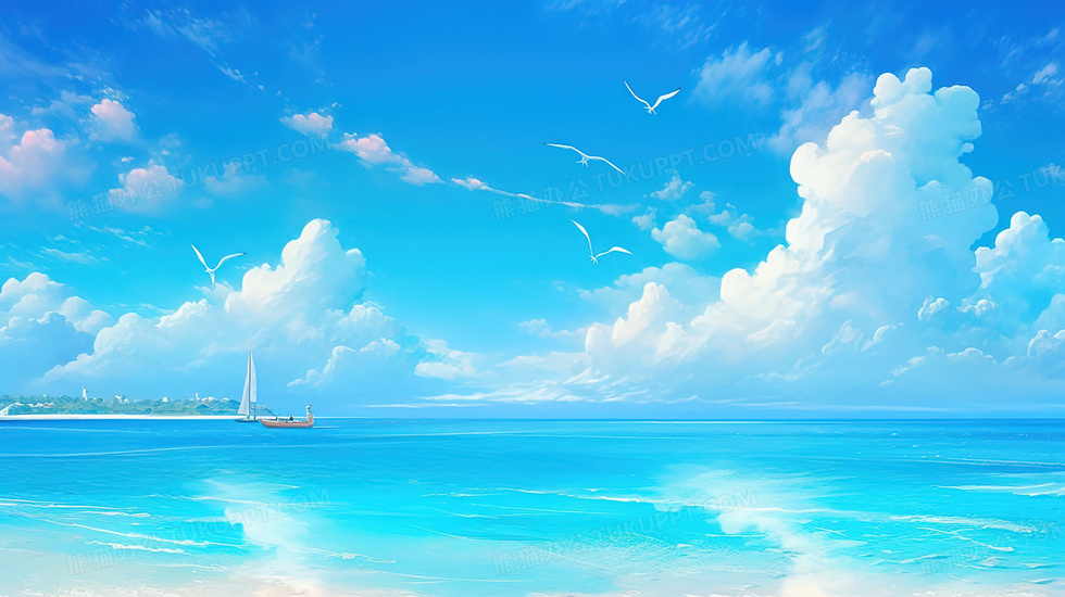 本作品内容为蓝色夏季清凉海边度假插画, 格式为 jpg, 大小6 MB, 图片尺寸为2912 x 1632, 源文件无水印, 欢迎使用熊猫办公。 如认为平台内容涉嫌侵权,可通过邮件:tousu@tukuppt.com提出书面通知,我们将及时处理。