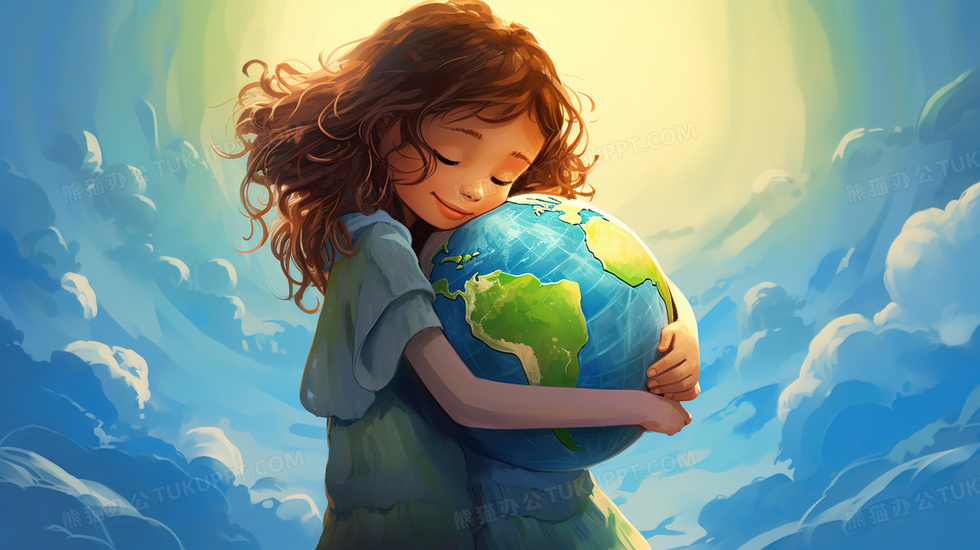 本作品内容为蓝天下双手拥抱地球的小女孩插画, 格式为 jpg, 大小5 MB, 图片尺寸为2912 x 1632, 源文件无水印, 欢迎使用熊猫办公。 如认为平台内容涉嫌侵权,可通过邮件:tousu@tukuppt.com提出书面通知,我们将及时处理。