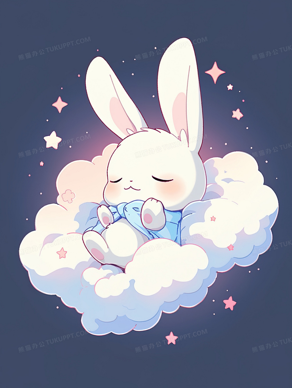 本作品内容为卡通可爱躺在云朵里的小兔子插画, 格式为 jpg, 大小4 MB, 图片尺寸为1856 x 2464, 源文件无水印, 欢迎使用熊猫办公。 如认为平台内容涉嫌侵权,可通过邮件:tousu@tukuppt.com提出书面通知,我们将及时处理。