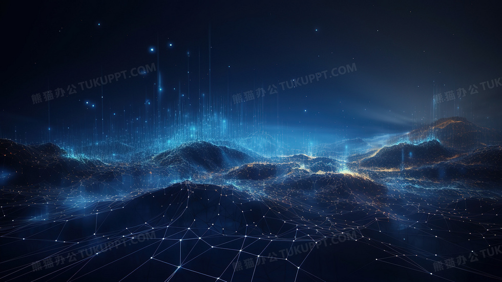 本作品内容为蓝色网状科技感粒子山峰插画, 格式为 jpg, 大小6 MB, 图片尺寸为2912 x 1632, 源文件无水印, 欢迎使用熊猫办公。 如认为平台内容涉嫌侵权,可通过邮件:tousu@tukuppt.com提出书面通知,我们将及时处理。