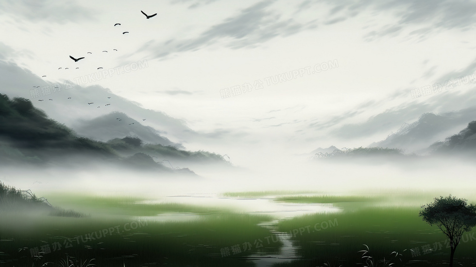 本作品内容为远山草原上的细雨水墨画插画, 格式为 jpg, 大小4 MB, 图片尺寸为2912 x 1632, 源文件无水印, 欢迎使用熊猫办公。 如认为平台内容涉嫌侵权,可通过邮件:tousu@tukuppt.com提出书面通知,我们将及时处理。