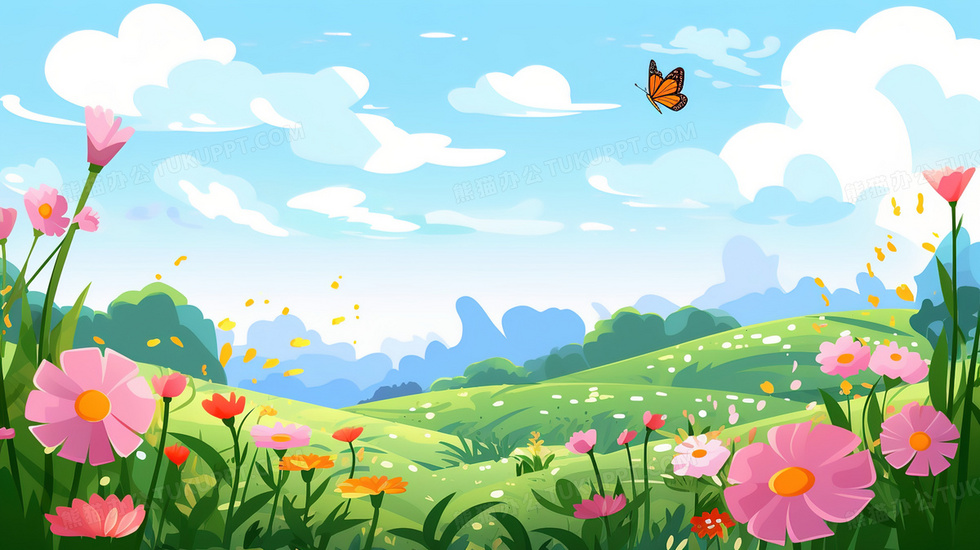 本作品内容为春季山林草地鲜花插画, 格式为 jpg, 大小4 MB, 图片尺寸为2912 x 1632, 源文件无水印, 欢迎使用熊猫办公。 如认为平台内容涉嫌侵权,可通过邮件:tousu@tukuppt.com提出书面通知,我们将及时处理。