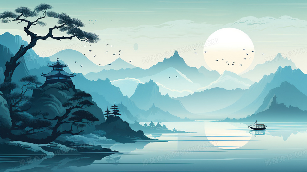 本作品内容为中国风山水钓鱼古风场景插画, 格式为 jpg, 大小5 MB, 图片尺寸为2912 x 1632, 源文件无水印, 欢迎使用熊猫办公。 如认为平台内容涉嫌侵权,可通过邮件:tousu@tukuppt.com提出书面通知,我们将及时处理。