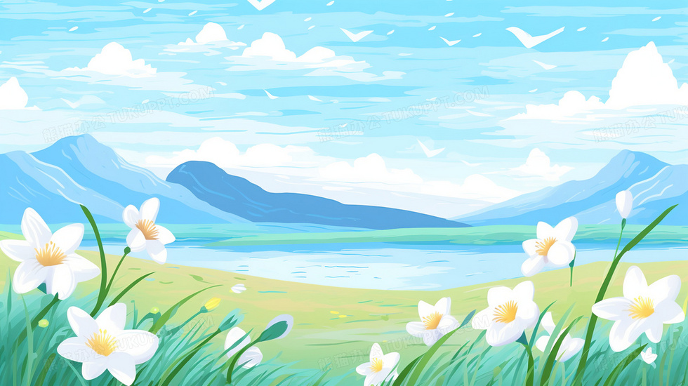 本作品内容为唯美春天草地小雏菊春季插画, 格式为 jpg, 大小5 MB, 图片尺寸为2912 x 1632, 源文件无水印, 欢迎使用熊猫办公。 如认为平台内容涉嫌侵权,可通过邮件:tousu@tukuppt.com提出书面通知,我们将及时处理。