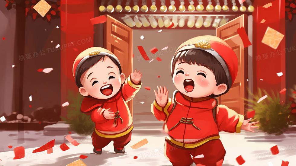 本作品内容为春节在大门口玩耍的孩子插画, 格式为 jpg, 大小5 MB, 图片尺寸为2912 x 1632, 源文件无水印, 欢迎使用熊猫办公。 如认为平台内容涉嫌侵权,可通过邮件:tousu@tukuppt.com提出书面通知,我们将及时处理。