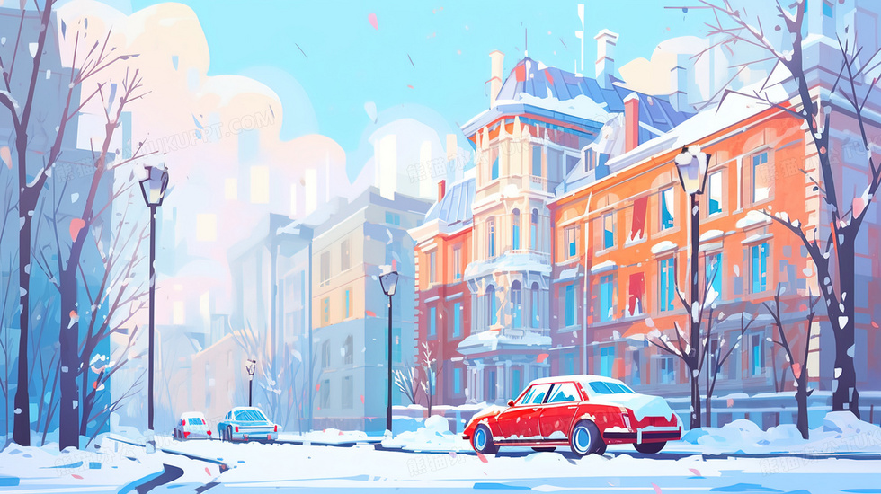 本作品内容为下雪天城市街道旁高楼建筑风景插画, 格式为 jpg, 大小5 MB, 图片尺寸为2912 x 1632, 源文件无水印, 欢迎使用熊猫办公。 如认为平台内容涉嫌侵权,可通过邮件:tousu@tukuppt.com提出书面通知,我们将及时处理。