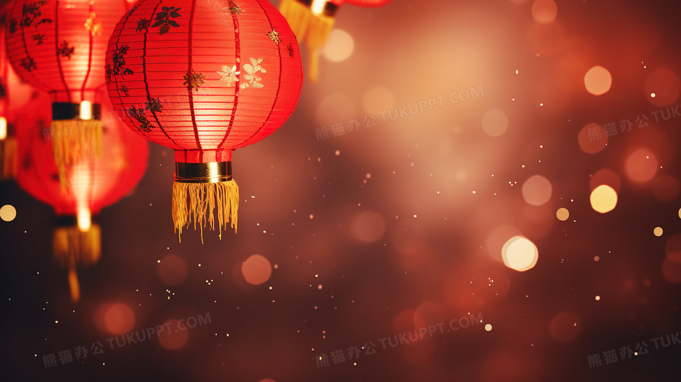本作品内容为中国新年中式灯笼插画, 格式为 jpg, 大小5 MB, 图片尺寸为2912 x 1632, 源文件无水印, 欢迎使用熊猫办公。 如认为平台内容涉嫌侵权,可通过邮件:tousu@tukuppt.com提出书面通知,我们将及时处理。