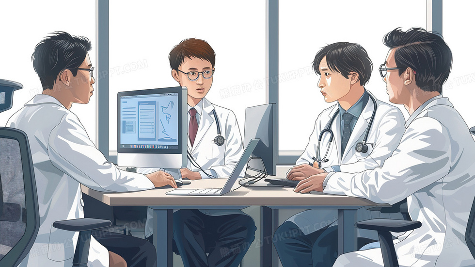 本作品内容为一群医生穿白大褂研究讨论插画, 格式为 jpg, 大小3 MB, 图片尺寸为2912 x 1632, 源文件无水印, 欢迎使用熊猫办公。 如认为平台内容涉嫌侵权,可通过邮件:tousu@tukuppt.com提出书面通知,我们将及时处理。