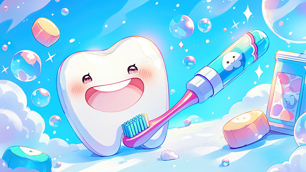 本作品内容为卡通牙齿健康清洁牙齿刷牙插画, 格式为 jpg, 大小3 MB, 图片尺寸为2912 x 1632, 源文件无水印, 欢迎使用熊猫办公。 如认为平台内容涉嫌侵权,可通过邮件:tousu@tukuppt.com提出书面通知,我们将及时处理。