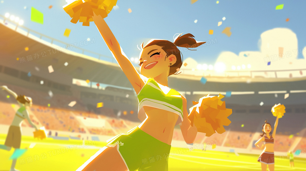 本作品内容为蓝天白云啦啦队少女插画, 格式为 jpg, 大小2 MB, 图片尺寸为2912 x 1632, 源文件无水印, 欢迎使用熊猫办公。 如认为平台内容涉嫌侵权,可通过邮件:tousu@tukuppt.com提出书面通知,我们将及时处理。