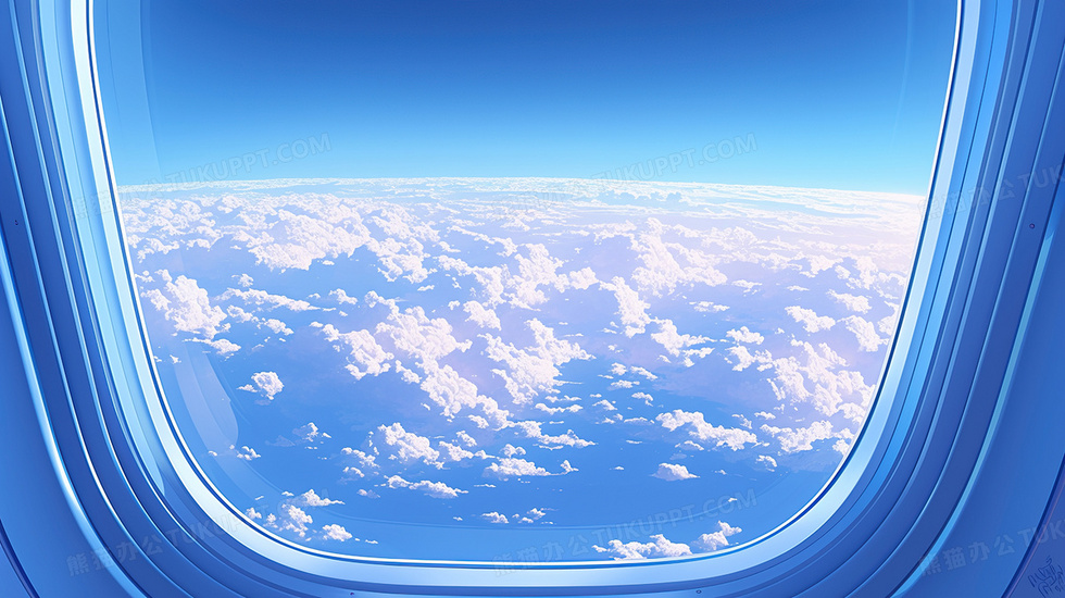 本作品内容为蓝天白云飞机窗外背景, 格式为 jpg, 大小3 MB, 图片尺寸为2912 x 1632, 作品中背景图片无需修改, 源文件无水印,可以直接使用, 欢迎使用熊猫办公。 如认为平台内容涉嫌侵权,可通过邮件:tousu@tukuppt.com提出书面通知,我们将及时处理。