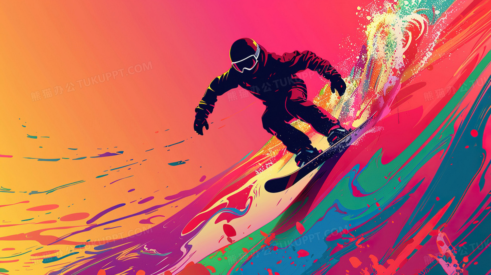 本作品内容为滑雪板运动员动态姿势彩色背景, 格式为 jpg, 大小6 MB, 图片尺寸为2912 x 1632, 作品中背景图片无需修改, 源文件无水印,可以直接使用, 欢迎使用熊猫办公。 如认为平台内容涉嫌侵权,可通过邮件:tousu@tukuppt.com提出书面通知,我们将及时处理。