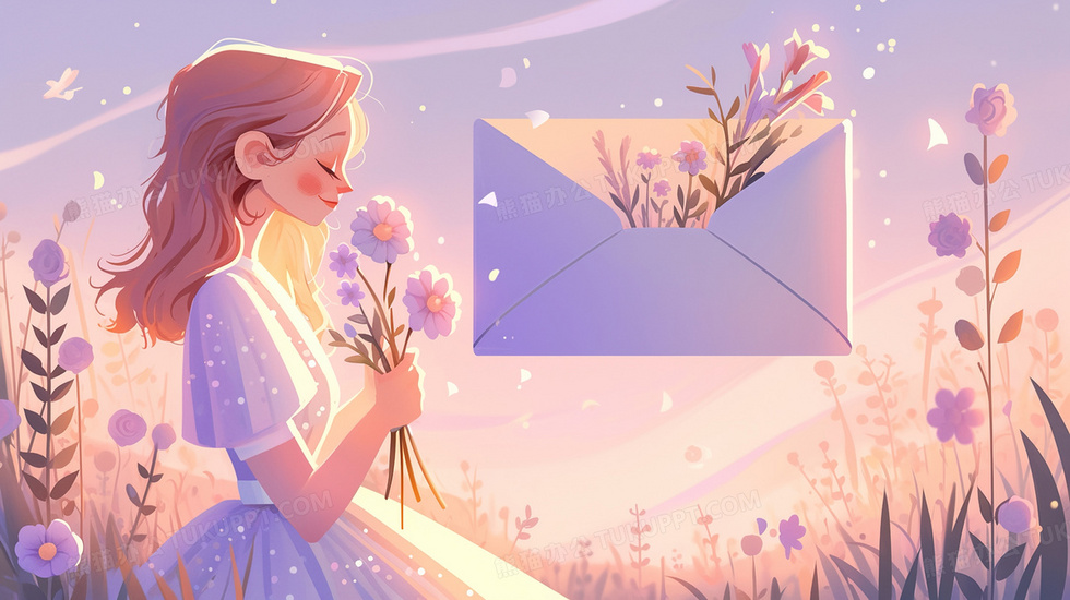 本作品内容为手拿鲜花收到感谢信的女孩插画, 格式为 jpg, 大小2 MB, 图片尺寸为2912 x 1632, 源文件无水印, 欢迎使用熊猫办公。 如认为平台内容涉嫌侵权,可通过邮件:tousu@tukuppt.com提出书面通知,我们将及时处理。