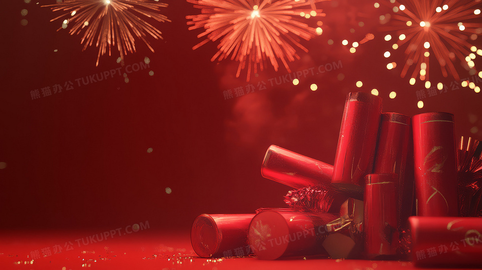 本作品内容为简约新年红色礼花鞭炮背景, 格式为 jpg, 大小6 MB, 图片尺寸为2912 x 1632, 作品中背景图片无需修改, 源文件无水印,可以直接使用, 欢迎使用熊猫办公。 如认为平台内容涉嫌侵权,可通过邮件:tousu@tukuppt.com提出书面通知,我们将及时处理。