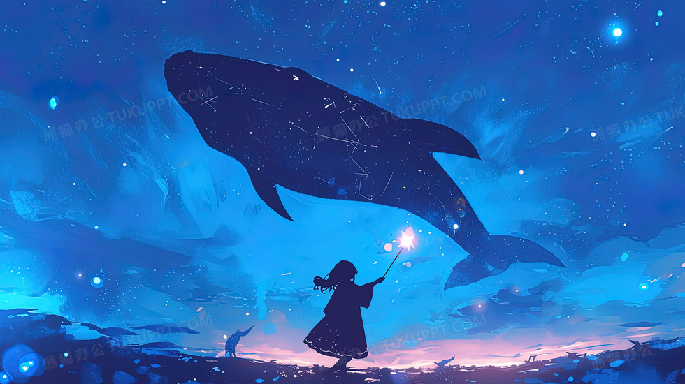 本作品内容为唯美梦幻夜晚拿仙女棒的少女与鲸插画, 格式为 jpg, 大小3 MB, 图片尺寸为2912 x 1632, 源文件无水印, 欢迎使用熊猫办公。 如认为平台内容涉嫌侵权,可通过邮件:tousu@tukuppt.com提出书面通知,我们将及时处理。