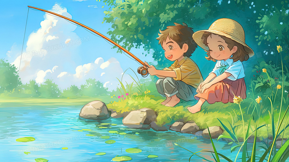 本作品内容为夏天池塘边钓鱼的小孩子插画, 格式为 jpg, 大小3 MB, 图片尺寸为2912 x 1632, 源文件无水印, 欢迎使用熊猫办公。 如认为平台内容涉嫌侵权,可通过邮件:tousu@tukuppt.com提出书面通知,我们将及时处理。