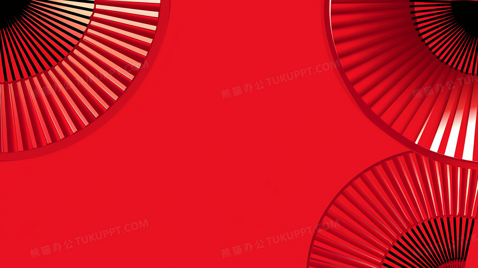 本作品内容为简约复古红色扇子背景, 格式为 jpg, 大小4 MB, 图片尺寸为2912 x 1632, 作品中背景图片无需修改, 源文件无水印,可以直接使用, 欢迎使用熊猫办公。 如认为平台内容涉嫌侵权,可通过邮件:tousu@tukuppt.com提出书面通知,我们将及时处理。