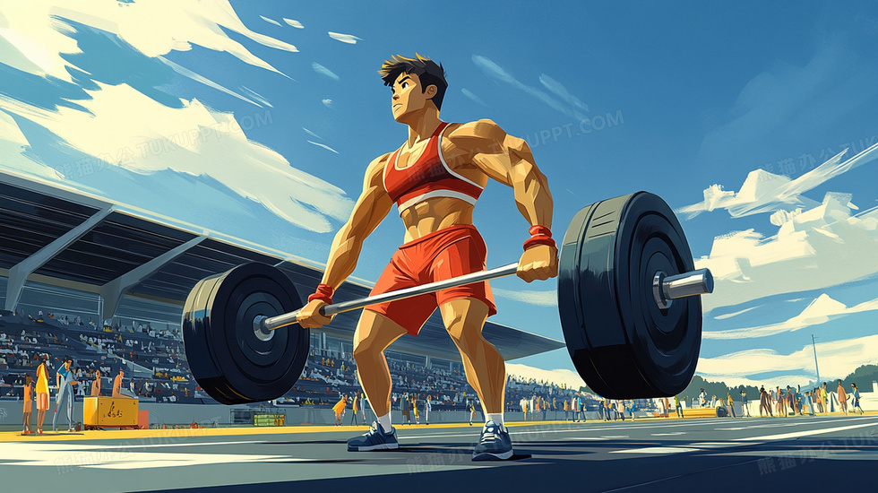 本作品内容为卡通动漫风举重运动员的插画, 格式为 jpg, 大小3 MB, 图片尺寸为2912 x 1632, 源文件无水印, 欢迎使用熊猫办公。 如认为平台内容涉嫌侵权,可通过邮件:tousu@tukuppt.com提出书面通知,我们将及时处理。