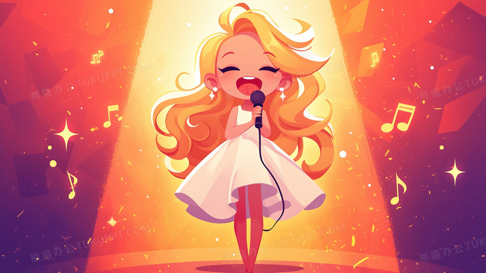 本作品内容为女孩舞台表演歌唱音乐插画, 格式为 jpg, 大小3 MB, 图片尺寸为2912 x 1632, 源文件无水印, 欢迎使用熊猫办公。 如认为平台内容涉嫌侵权,可通过邮件:tousu@tukuppt.com提出书面通知,我们将及时处理。